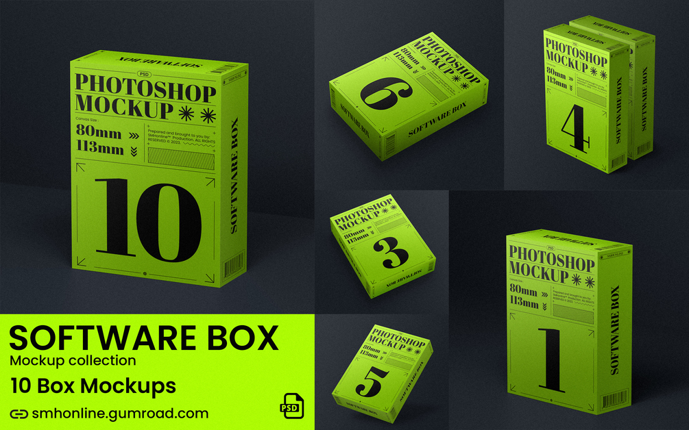 Presenting our curated selection of 10 high-quality software box mockups, designed to elevate your product presentations effortlessly. Each mockup is fully editable with included PSD files, allowing you to customize and showcase your designs with ease.